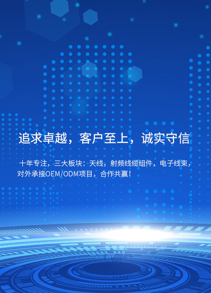 About us昆山英淋科電子有限公司成立于2013年,是一家致力于全球互聯(lián)產(chǎn)品的專業(yè)廠商,公司在上海和臺北設有研發(fā)中心,并建有先進的微波暗室,昆山和南陽(河南)設有兩座制造工廠.公司下轄三大產(chǎn)品事業(yè)部:天線事業(yè)部,主要研發(fā)生產(chǎn)全系列各類天線,包含手機天線,無線路由器天線,NB天線,北斗天線,汽車天線,玻璃鋼天線,吸盤天線,F(xiàn)akra天線,5G天線,鐵氧體天線,RFID天線等,并研發(fā)定制各類天線。射頻事業(yè)部,主要研發(fā)生產(chǎn)射頻連接器,射頻線纜組件,射頻跳線,射頻測試線纜,通信基站、機柜射頻線纜等,包含0.81、1.13、1.37、RG174、RG178、RG179、RG316、RG58、RG141/142,以及半鋼半柔射頻線纜組件。電子線事業(yè)部,主要...